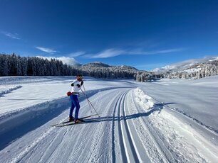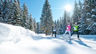 Millionen von kleinen Glitzerkristallen funkeln am Schneeteppich unter den Langlaufskiern um die Wette. Der Kopf ist ganz frei durch die gleichmäßige Bewegung in der Natur. Einzig und allein der eigene Atem und das Geräusch der Schi, die Schritt für Schritt über den Schnee gleiten, sind zu hören.