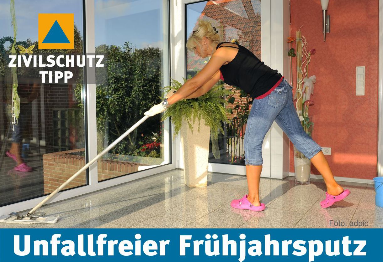Stress, Hektik und das Gefühl, alles gleichzeitig machen zu müssen, gelten als Hauptge-fahren für viele Unfälle beim Frühjahrsputz. Ausrutschen, Stolpern oder ein Sturz von einer wackeligen Leiter kann schnell einmal passieren. In den Monaten März, April und Mai verletzen mehr als 20.000 Personen bei Reinigungsarbeiten im Haushalt so schwer, dass sie im Spital behandelt werden müssen. Mit der Beachtung einiger Sicherheitstipps lassen sich unnötige Gefahren mühelos umgehen.